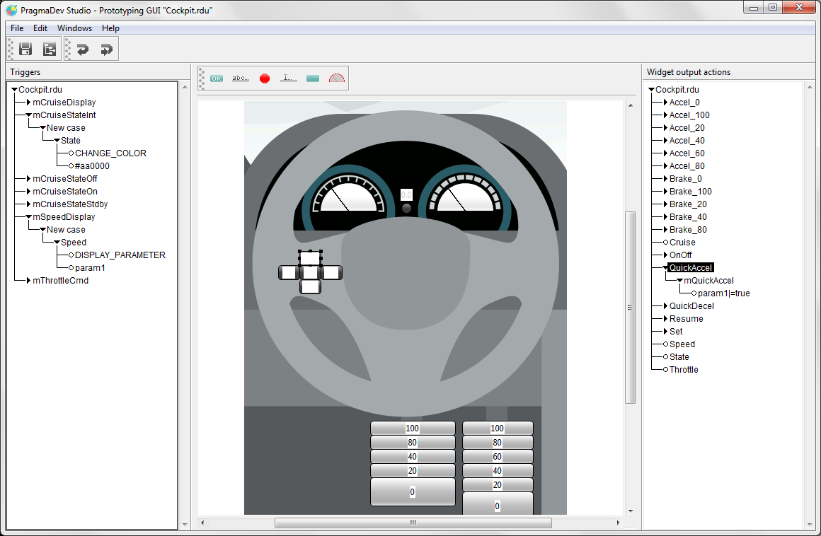 A gauge widget has been introduced in the prototyping gui. It is a very nice and realistic way of displaying a value between 0 and 100. And this is very useful when co-simulating a clock based model through the FMI interface.