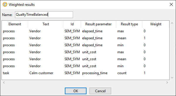 Define composite results with weights.